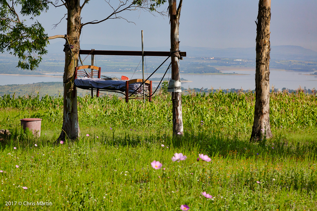 On our way into town we pass this bed hanging from a tree adjacent to the corn fields. I guess that after someone tends to the corn fields they need a little rest.