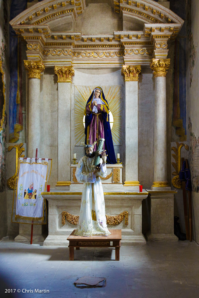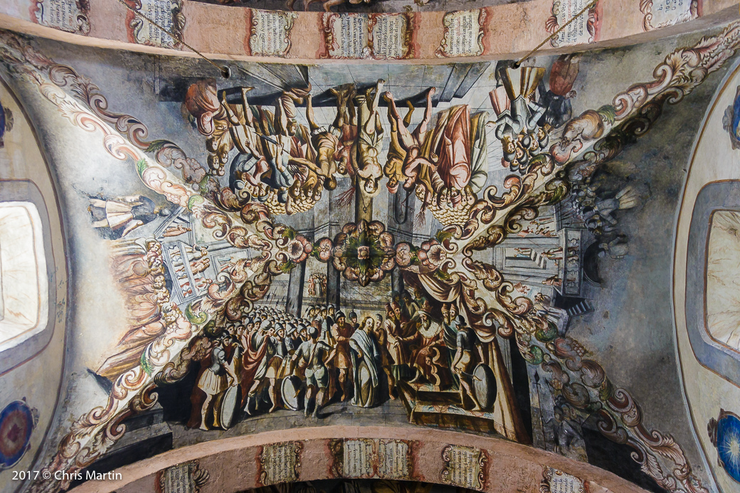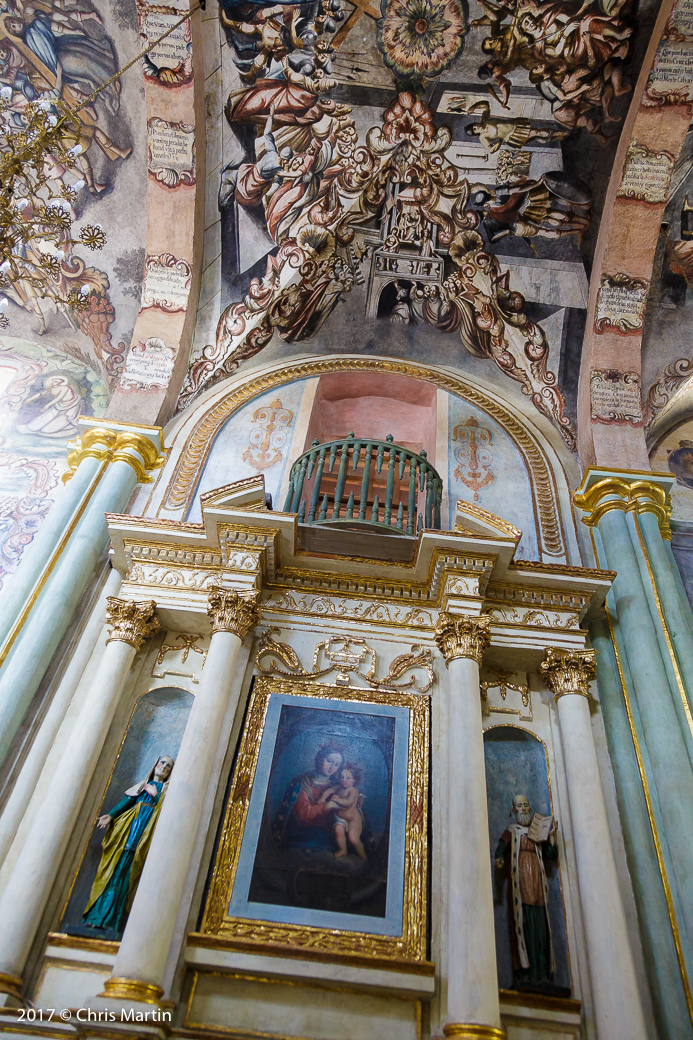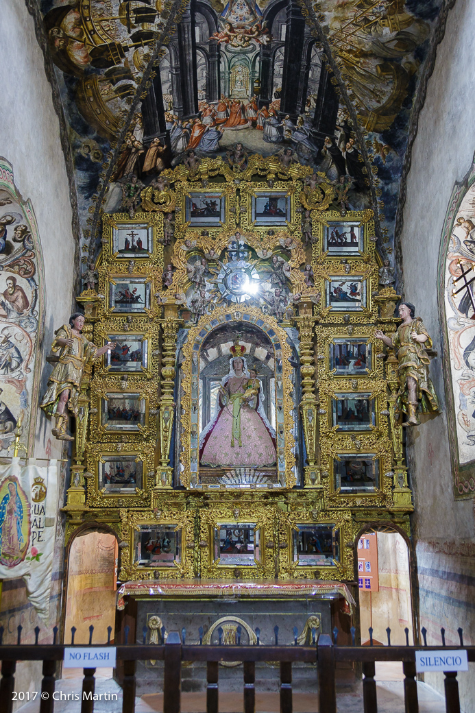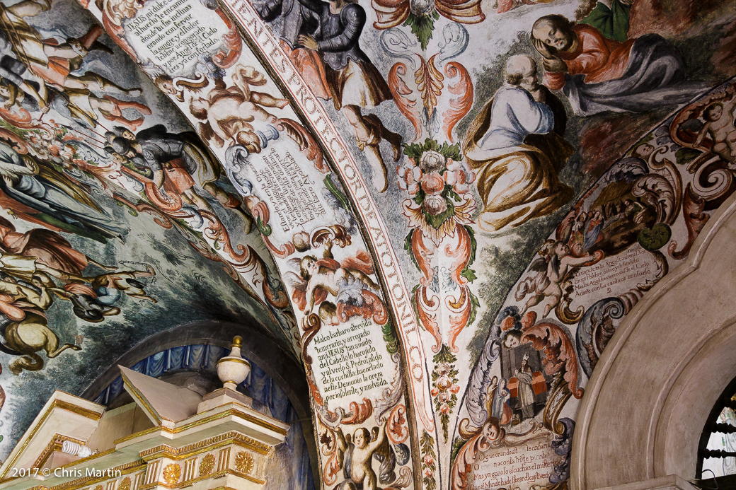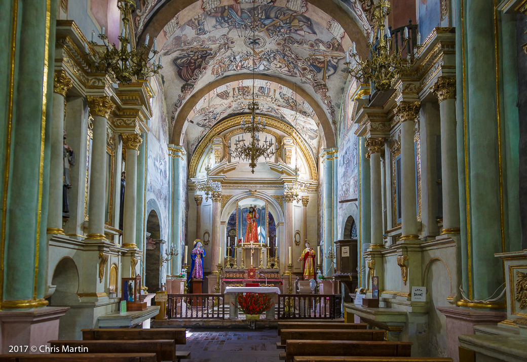 From the gallery, we went back into the small town of Atotonilco and this time we parked the park and went into the old church—the Sanctuary de Atotonilco. It was really something to see. It was built in the 18th century and the frescos/paintings on the ceiling and walls were really something. Just the age of the building is really interesting. The main part of the church is open to the public, but there were also a few parts of the interior that were blocked off to visitors. I tried my best to at least get a photo of these areas.