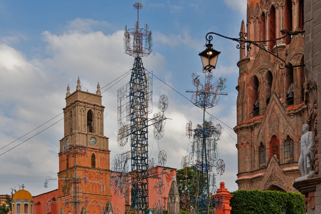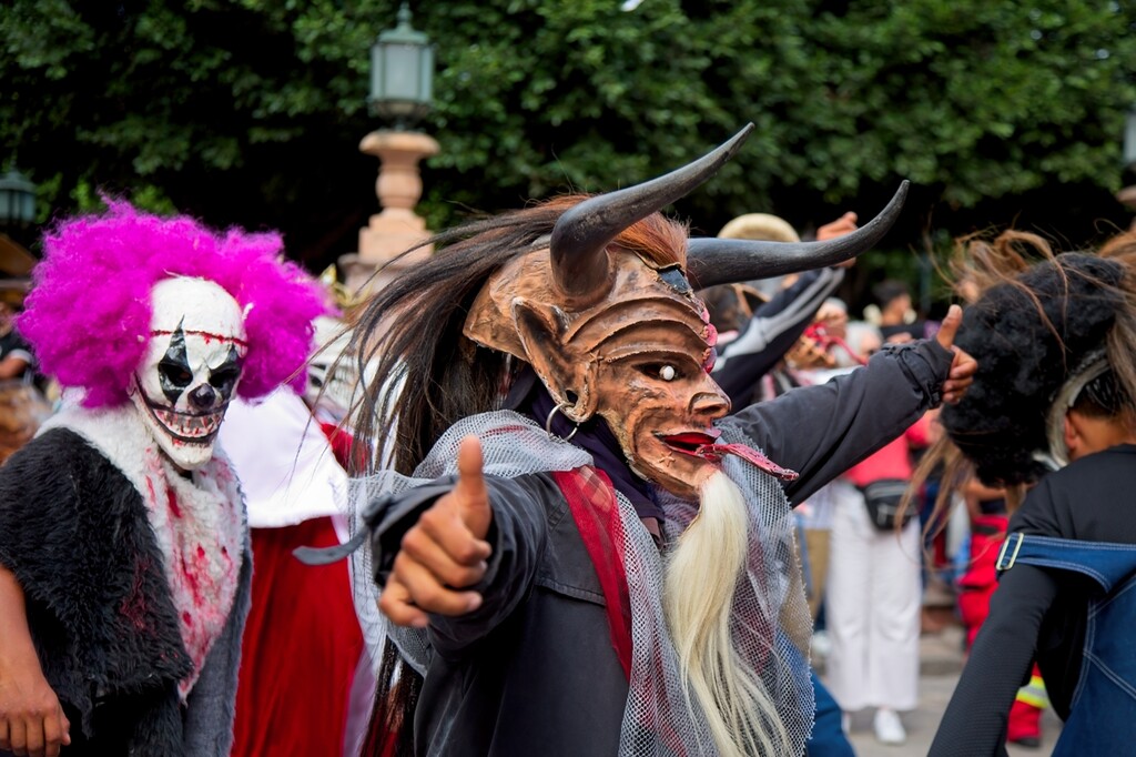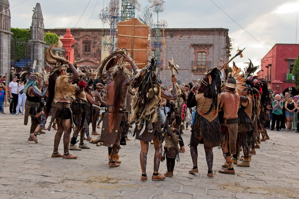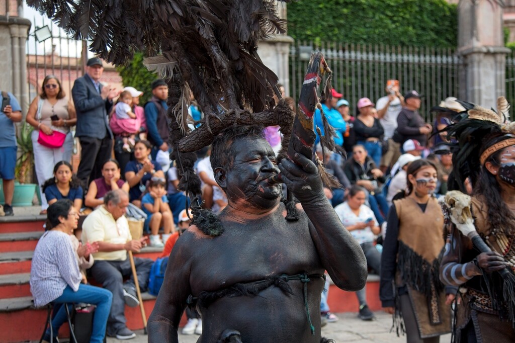 This weekend marks the 100th anniversary of the La Alborada celebration in San Miguel de Allende. We went to the Jardin and caught a couple of the groups dancing and celebrating the holiday. The Locos were there with their crazy masks and an “Indian” group with dancers and drums performed in front of the Parroquia.