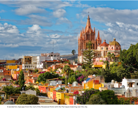 A wonderful cityscape from the roof of the Rosewood Hotel with the Parroquia towering over the city.
