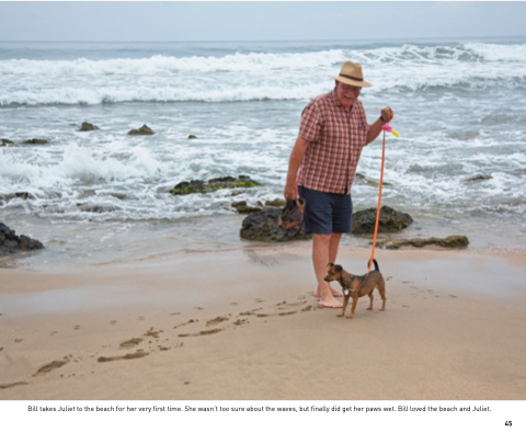 Bill takes Juliet to the beach for her very first time. She wasn’t too sure about the waves, but finally did get her paws wet. Bill loved the beach and Juliet. 45